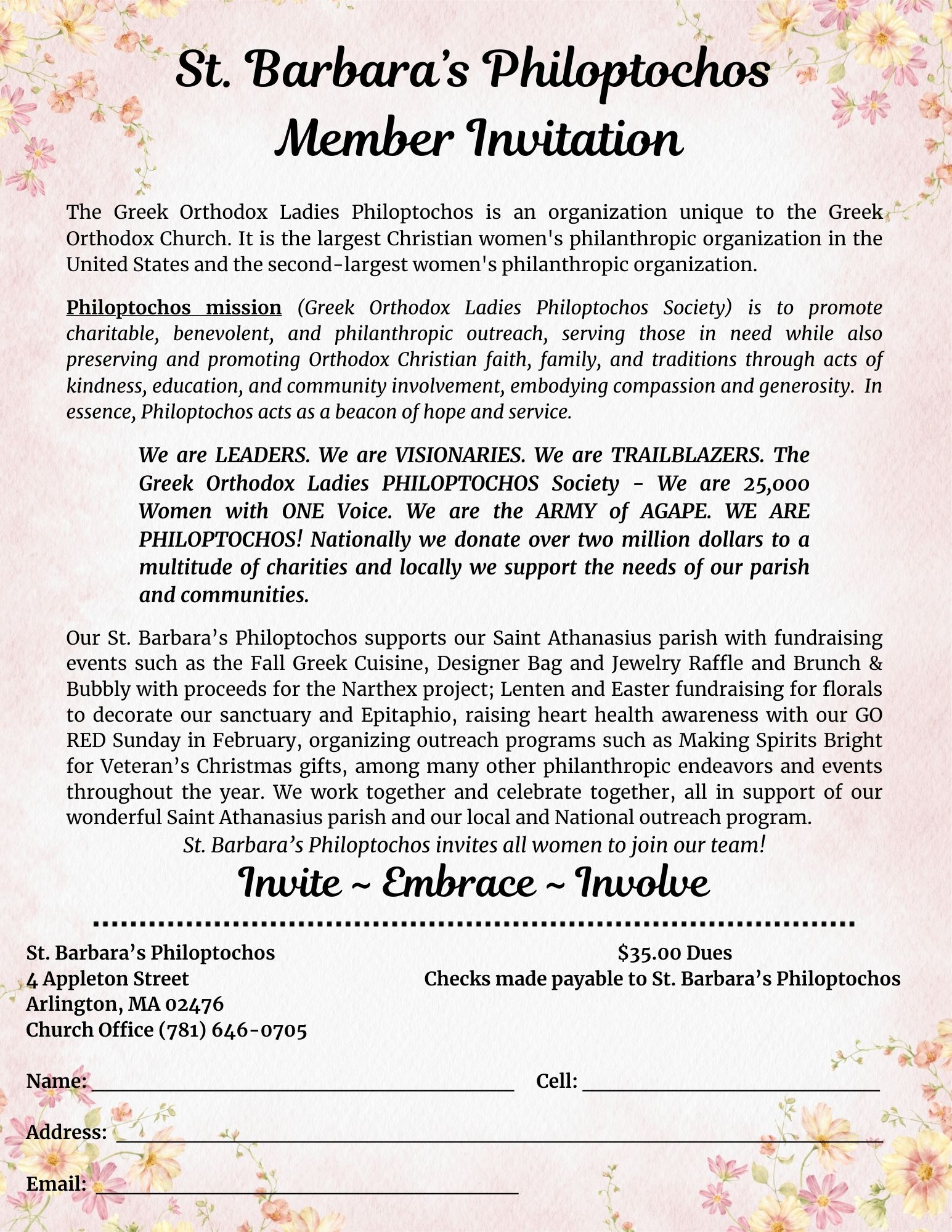 Please become a member of Philoptochos and place your name among those who support Christ's work and love for men and women here on earth.